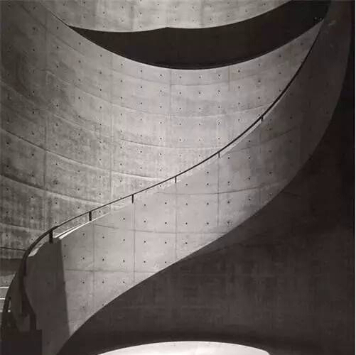 安藤在設(shè)計(jì)中有意識地關(guān)注建筑傳統(tǒng),尤其是日本的傳統(tǒng)住宅,并深受其謙遜與淡泊的品質(zhì)的感染。但他的建筑給人的印象并不是傳統(tǒng)的,而是異常地現(xiàn)代,這在很大程度上歸因于他喜用的混凝土材料。在20世紀(jì),很少有人像安藤這樣把混凝土材料在建筑中發(fā)揮得如此淋漓盡致。帶圓孔的清水混凝土墻面是安藤建筑的顯著外表。