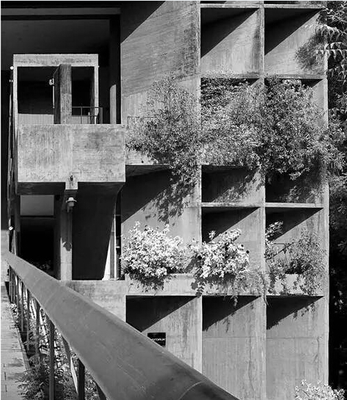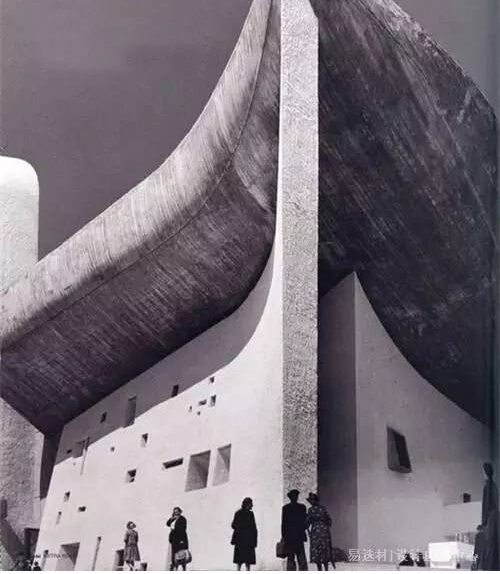 勒柯布西耶,1945年的馬賽公寓位代表,許多建筑結(jié)構(gòu)承重墻被鋼筋水泥取代,而且建筑往往騰空于地面之上,朗香小教堂以其富有表現(xiàn)力的雕塑感和它特別的形式使建筑界為之震驚,完全背離了早期古典的語匯,這是現(xiàn)代人所建造的很令人難忘的建筑之一。