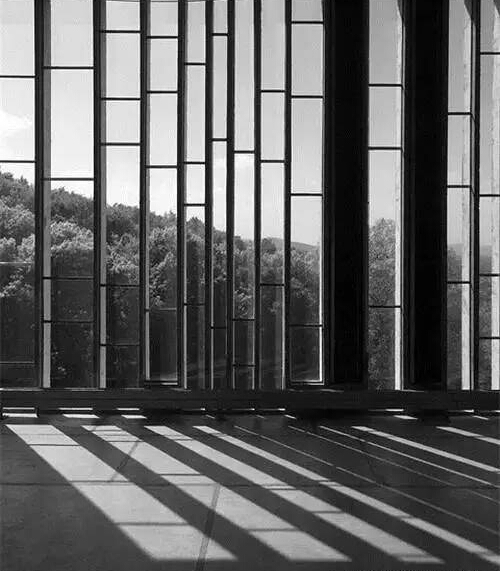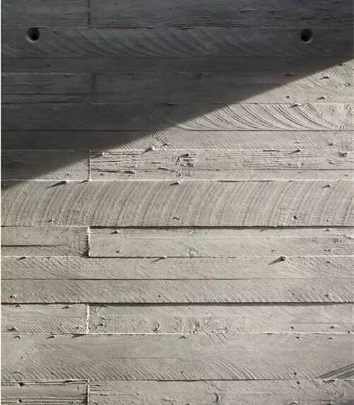 路易 斯?康對混凝土的要求是:貫穿整體的秩序感和通過完整墻面表現(xiàn)出來的美感。金貝爾美術(shù)館位于美國德克薩斯州沃思堡的郊區(qū),于1972年建成??翟诖苏宫F(xiàn)了其個(gè)人對于建筑材料的偏好:將混凝土柱和薄殼形拱頂結(jié)構(gòu)裸露在外,而非承重墻則采用羅馬灰華石及玻璃板,以滿足不同空間和位置的采光要求?;胰A石及玻璃板同混凝土之間沒有過強(qiáng)的對比,所形成的空間質(zhì)感近同,肌理混合為一。