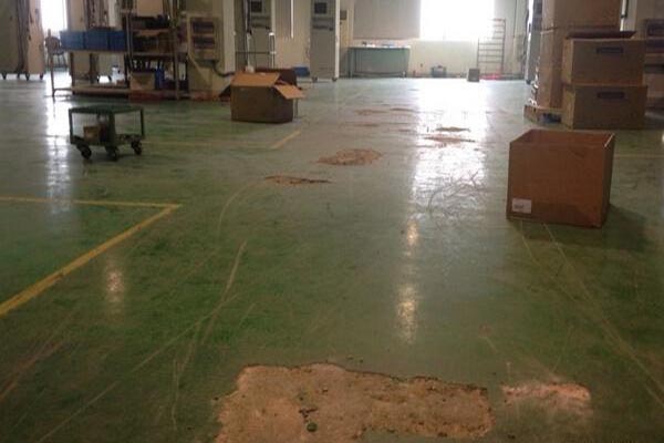 環(huán)氧地坪:不耐磨,特別是轉(zhuǎn)彎處,經(jīng)常被磨損掉